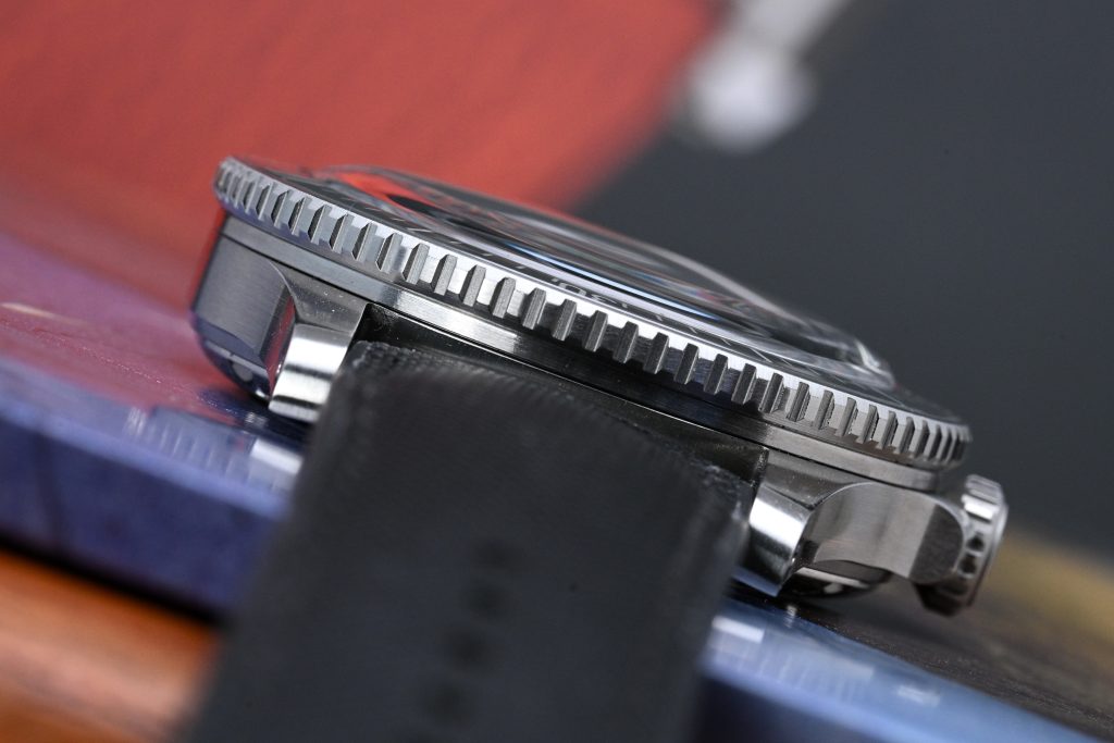 On my 6.75″ wrist, it feels perfectly balanced, with its 12.85mm thickness (including the generously domed sapphire crystal) giving it a satisfying presence. The height is well distributed between the case-back, mid-case, bezel, and crystal.