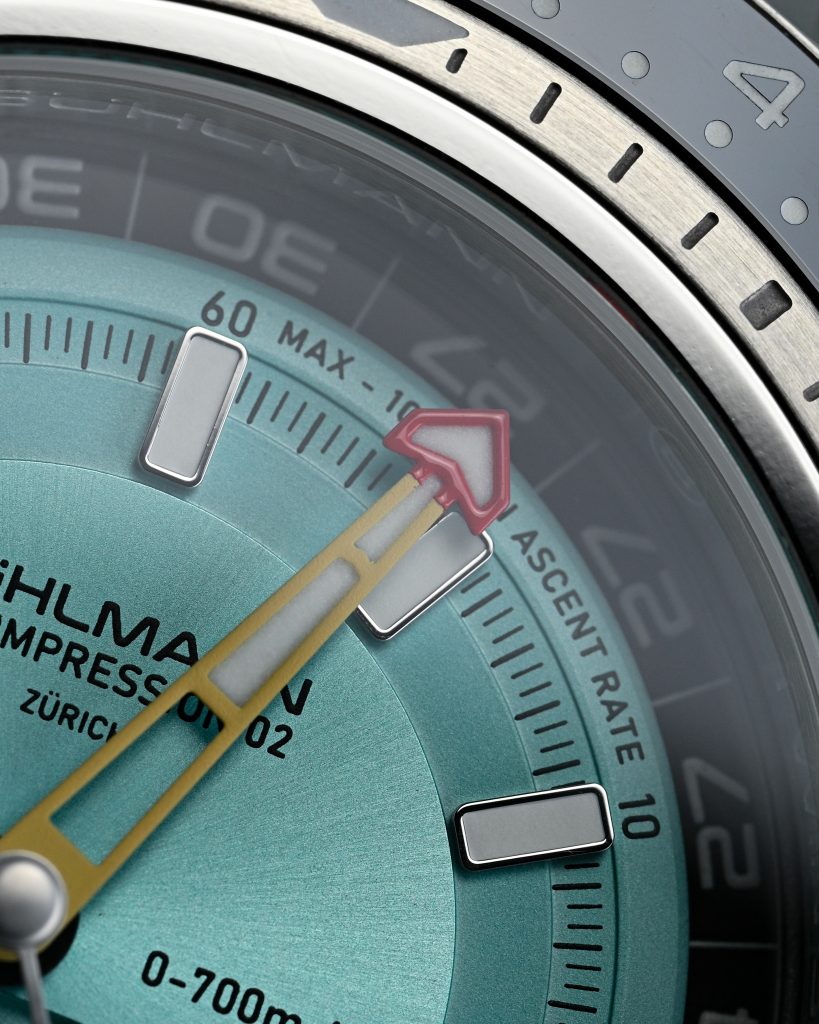 This is the second watch from the Bühlmann brand, which has been brought to life by Thomas Bühlmann and Watch Angels. For those of you who don’t know, Watch Angels is a hybrid crowd funding style platform, except that each brand or designer works directly with Watch Angels’ Swiss R&D lab and leverages their manufacturing expertise to bring these watches to production. They have released some excellent pieces over the years, and worked with brilliant designers and brands, such as Thomas Funder, Cedric Bellon, Waltham, and even Frederique Constant. At the time of writing, the 575 piece limited edition Decompression 02 was available for CHF 3790 with deliveries in August 2026.