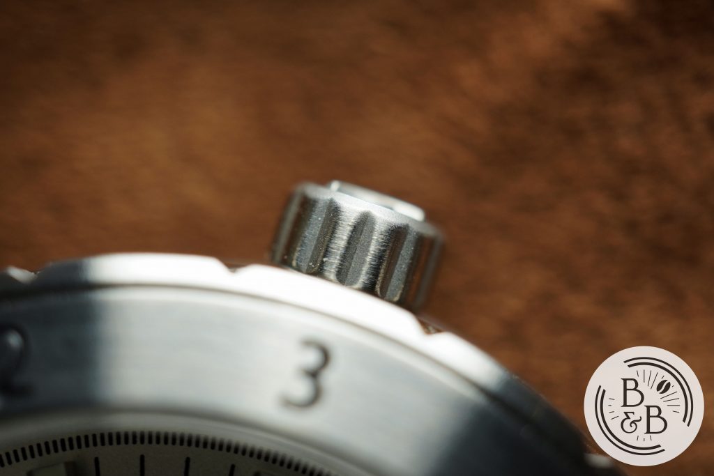 I don’t love the crown, because it feels a bit small at 5.75mm in diameter. The crown also appears to be bead blasted, and doesn’t perfectly match the rest of the case. The grip is alright, but feels a bit slippery when you’re getting those last few turns in, similar to the Vandaag Tiefsee that I recently reviewed.