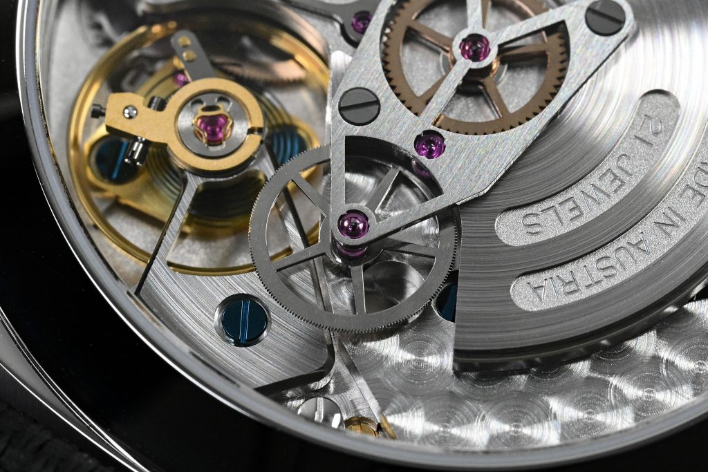 The Josef is powered by the A11GSP. The A11 family carries an architectural lineage that people like to connect to the Valjoux 7750, but once you’ve owned or handled one, you’ll realize that comparison falls apart almost immediately… because this movement simply doesn’t look, feel, or behave like one. The first tell is the winding: it’s smooth and deliberate, genuinely luxurious, with the kind of resistance that makes you want to interact with it.