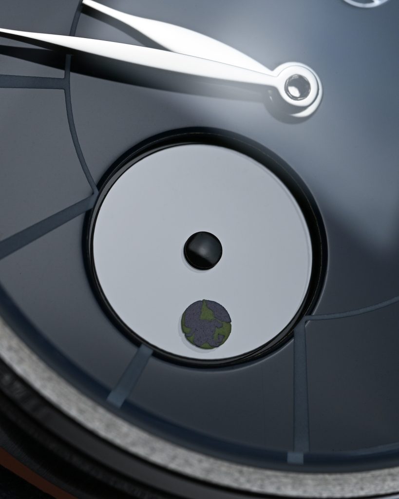 The handset is classic, well finished, and easy to read, bringing together a dial that manages to be simple in concept yet complex in execution due to its enamel base and rotating Earth motif.
