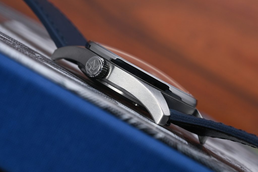 On the wrist, the HZ.03 Blue Marble wears more ruggedly than its 35.75mm diameter might suggest, thanks in part to a 43.5mm lug-to-lug that gives it a more significant presence without feeling dainty. Its 11.75mm height sits noticeably lower than the numbers suggest, due to the curved crystal occupying much of that height.