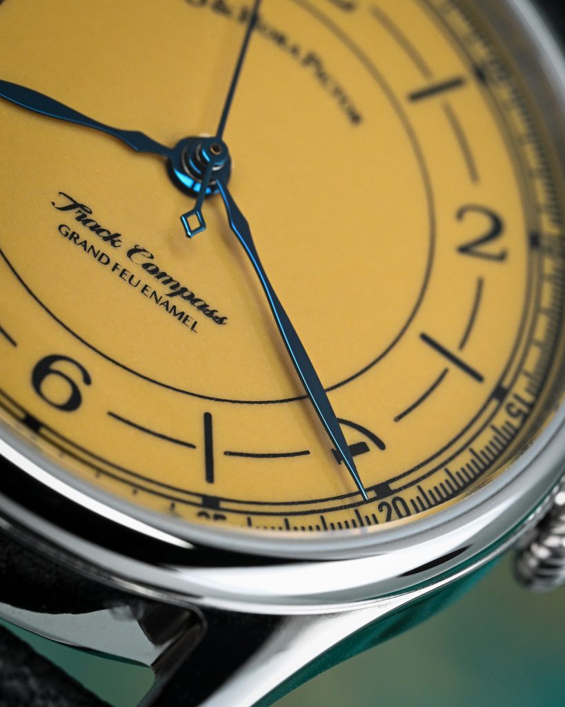 Overall, the dial is the reason you buy this watch. That yellow opaque enamel base is bold without being garish, the symmetry and sector-like structure give it real design discipline, and the hands add a layer of charm and personality that you don’t see too often. It all comes together in a way that’s both beautiful and, somehow, still quite utilitarian.
