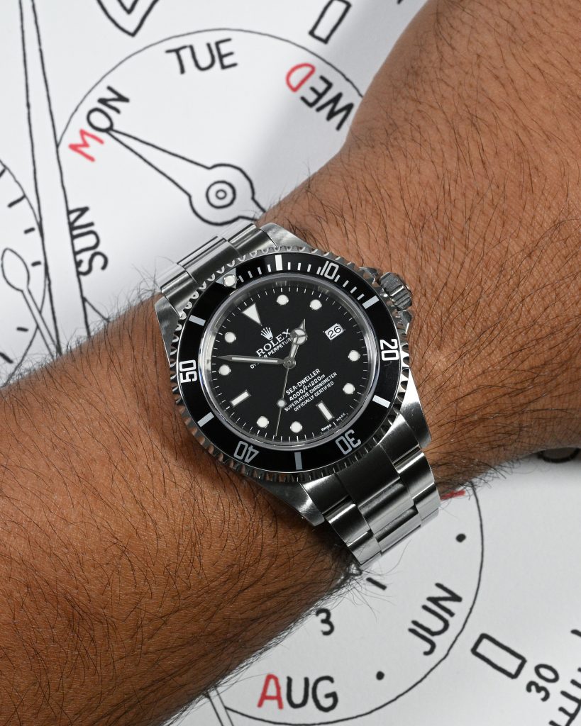 Another small thing that matters more than it should: no rehaut branding. Modern Rolex rehauts feel like billboards, and I can’t unsee it once I notice it. The clean, unbranded inner ring on the 16600 is a quiet reminder of when Rolex was still leaning harder into that utilitarian identity, before the brand fully embraced its current status-symbol era.