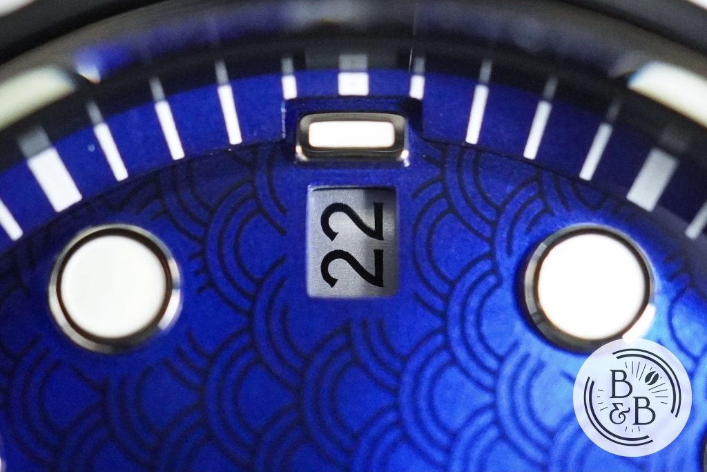 The dial on this watch is spectacular. You might be thinking that this looks like any other Seiko mod job, since the Seigaiha pattern is pretty common among the modding community. But the deep blue color, the brushed finish of the dial and the wave pattern look fantastic in person. The deep case and almost vintage feeling crystal make this look even better. I read that Seigaiha translates to “blue sea and waves”, and I can’t think of a better execution of this pattern. Well done Seiko, you win this round.