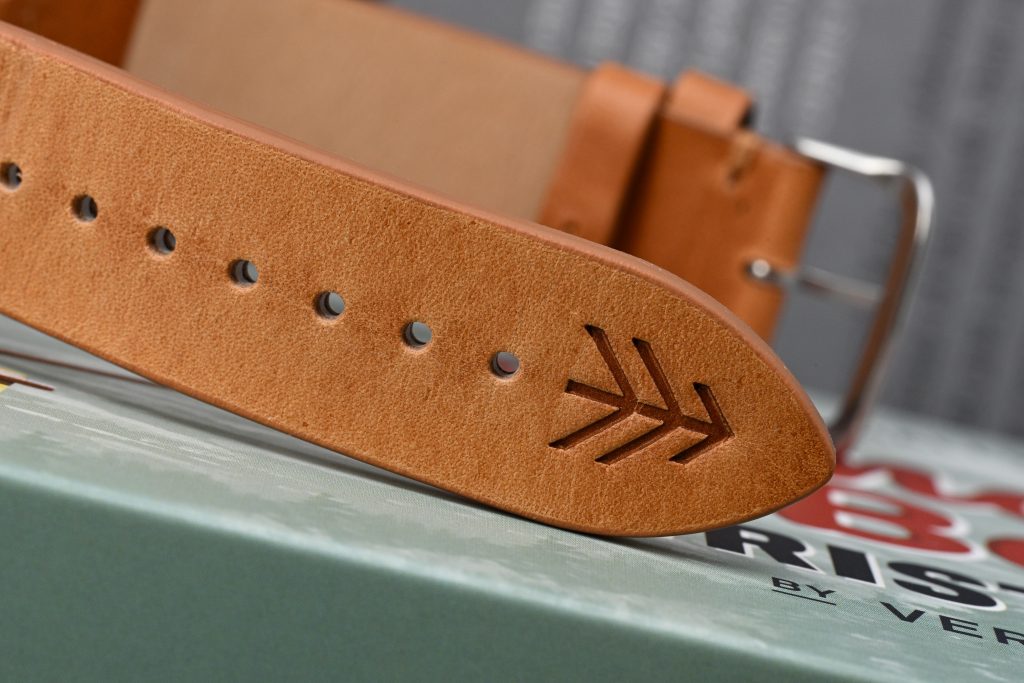 The head weighs a reasonable 63 grams, and the strap adds roughly another 9 grams. The supplied strap is quite thick and does require some break-in, but it feels durable and well suited to the overall character of the watch. Once softened up, it seems like the kind of strap that should hold up well to years of use and abuse, which makes it a fitting choice for such a tool-oriented design. I also appreciate the signed tip, though the buckle itself is a bit generic and could have been given a bit more attention.