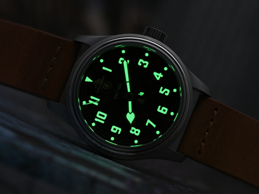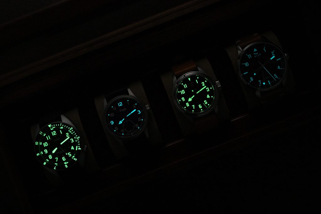 In practical use, the overall performance is excellent for this type of watch. It glows bright, lasts a good amount of time, and remains fairly legible through the night. Compared with similarly priced watches such as the Vaer Solar Field (using ceramic lume blocks for its numerals), Buser Freres GSTP 38, and VIIS Flieger 42, the VERO performs very well.