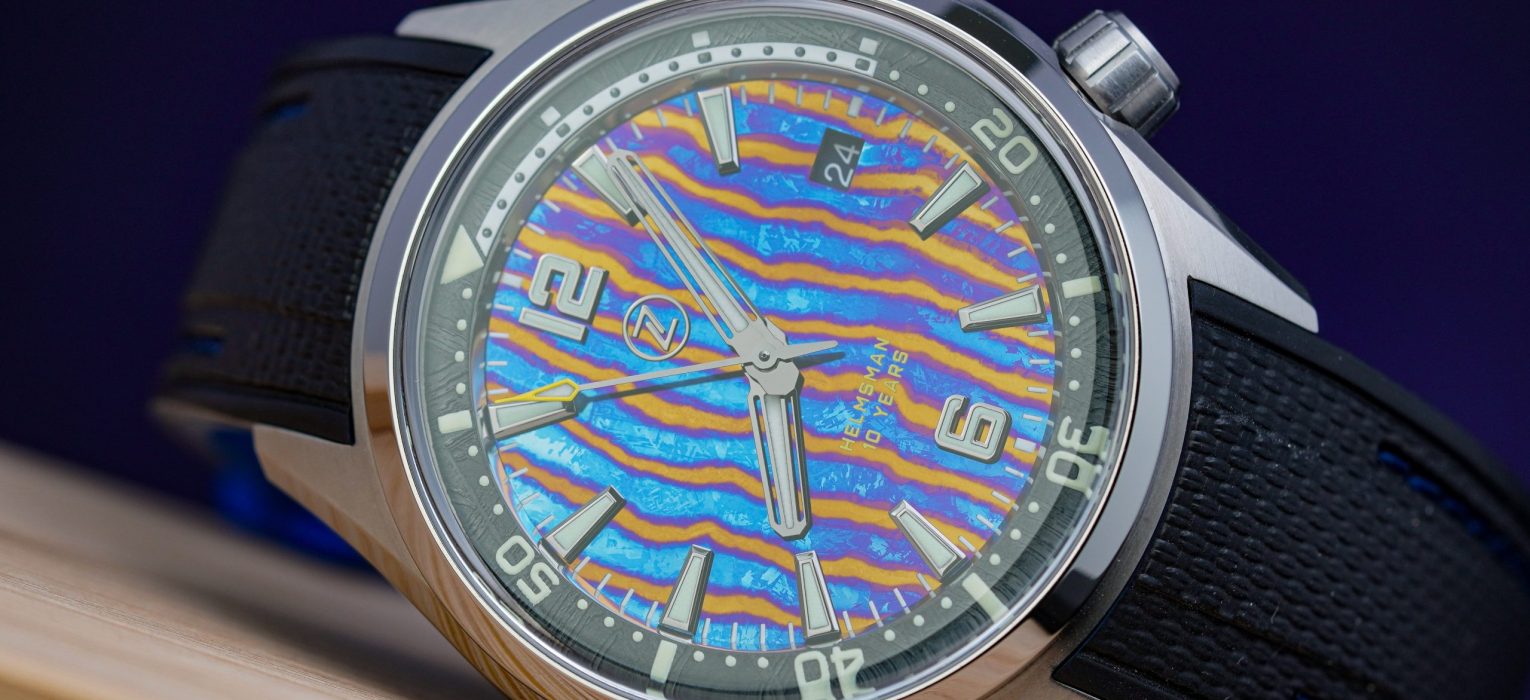 The Zelos Helmsman 10th Anniversary Limited Edition marks a significant milestone for a brand that has steadily risen beyond its microbrand origins to a well-recognized name in the affordable watch market, and broader watch market too. Celebrating a decade of operation, Zelos, known for its enthusiastic approach to watch design, launched this model in a limited series of just 300 units. This release highlights the attributes that have endeared Zelos to its followers: the use of exotic materials, vibrant colors, bold designs, and remarkable value for money.